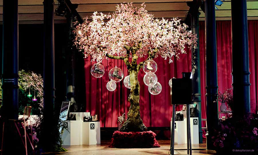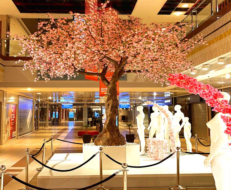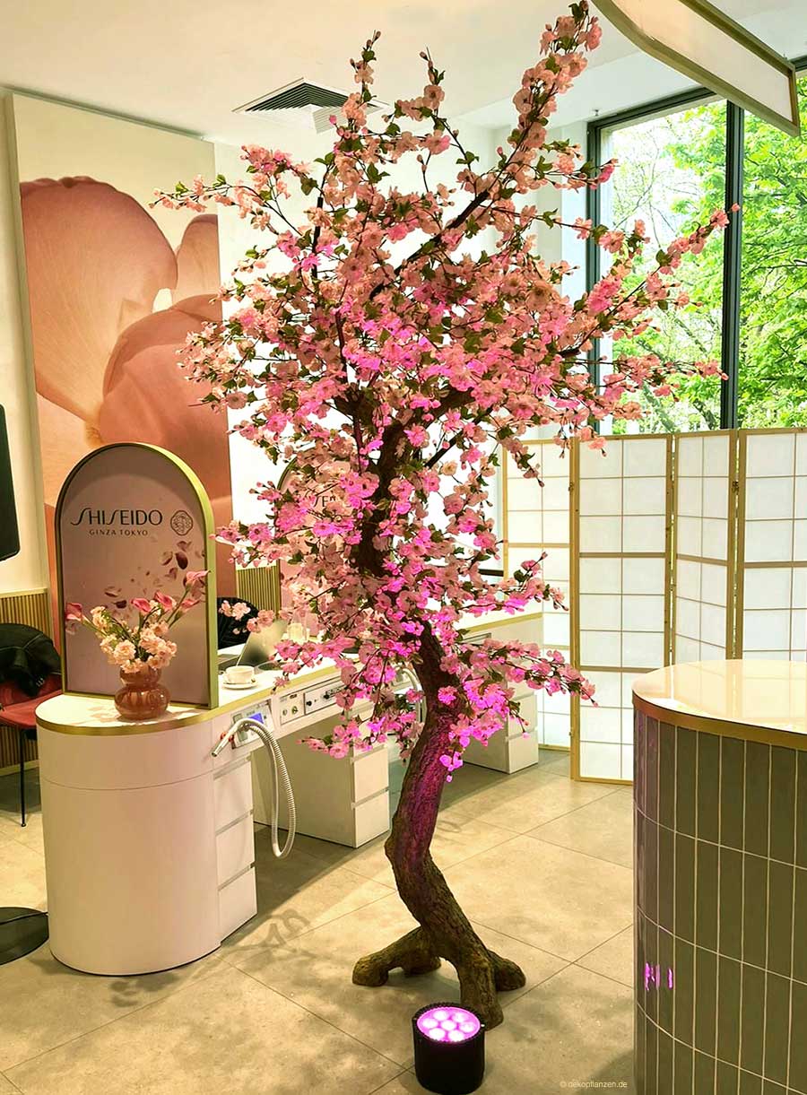 Unsere Kirschblüten-Kunstbäume werden häufig eingesetzt, wenn ein Raum eine klare, leichte Optik erhalten soll. Die zarten Blüten wirken offen und einladend, ohne den restlichen Aufbau zu überlagern. Dadurch eignen sie sich besonders für Präsentationsflächen, Schaufensterdekorationen, Empfangsbereiche, Messestände, Showrooms und atmos­phärische Zonen in Gastronomie- und Eventbereichen.